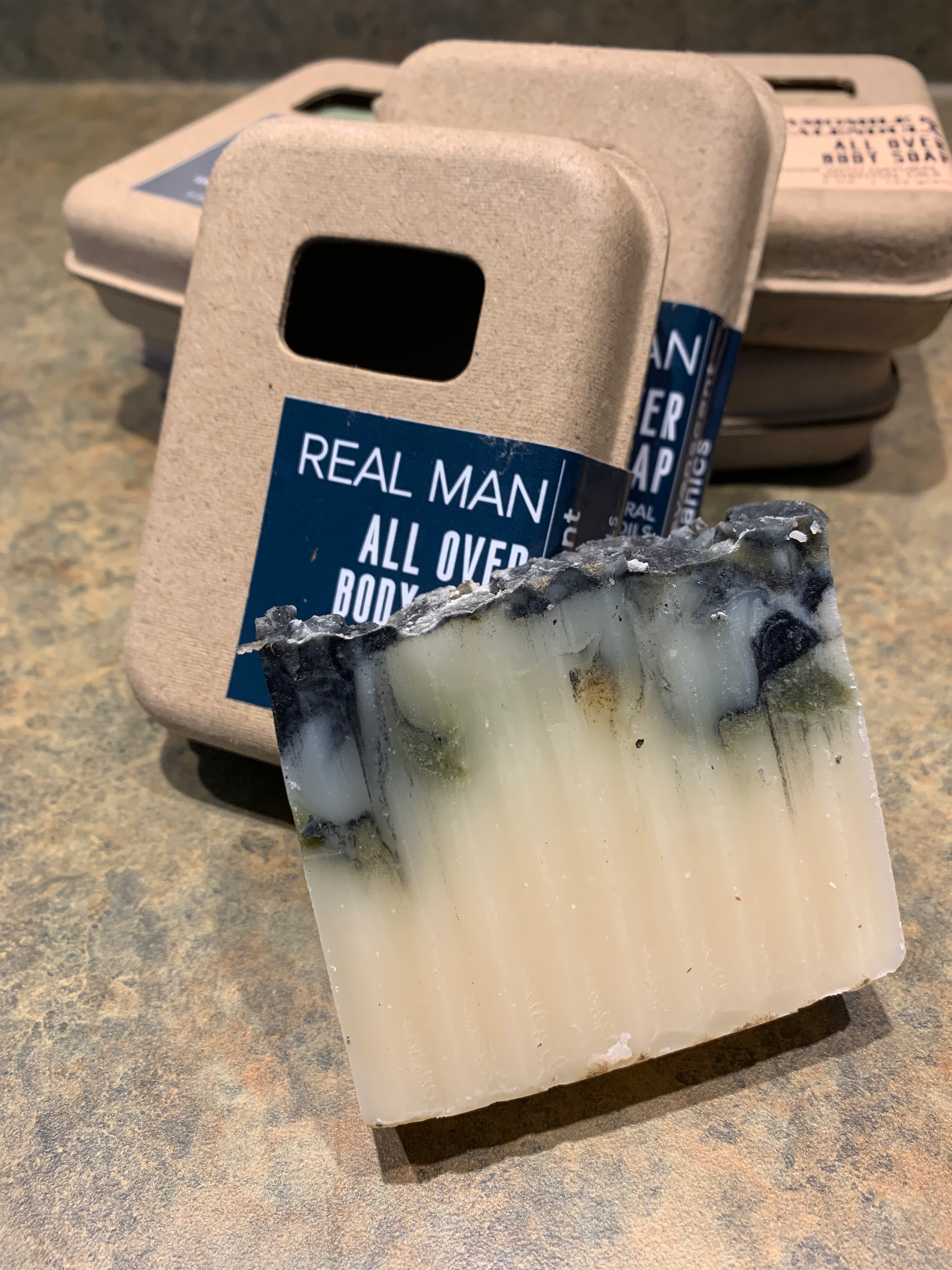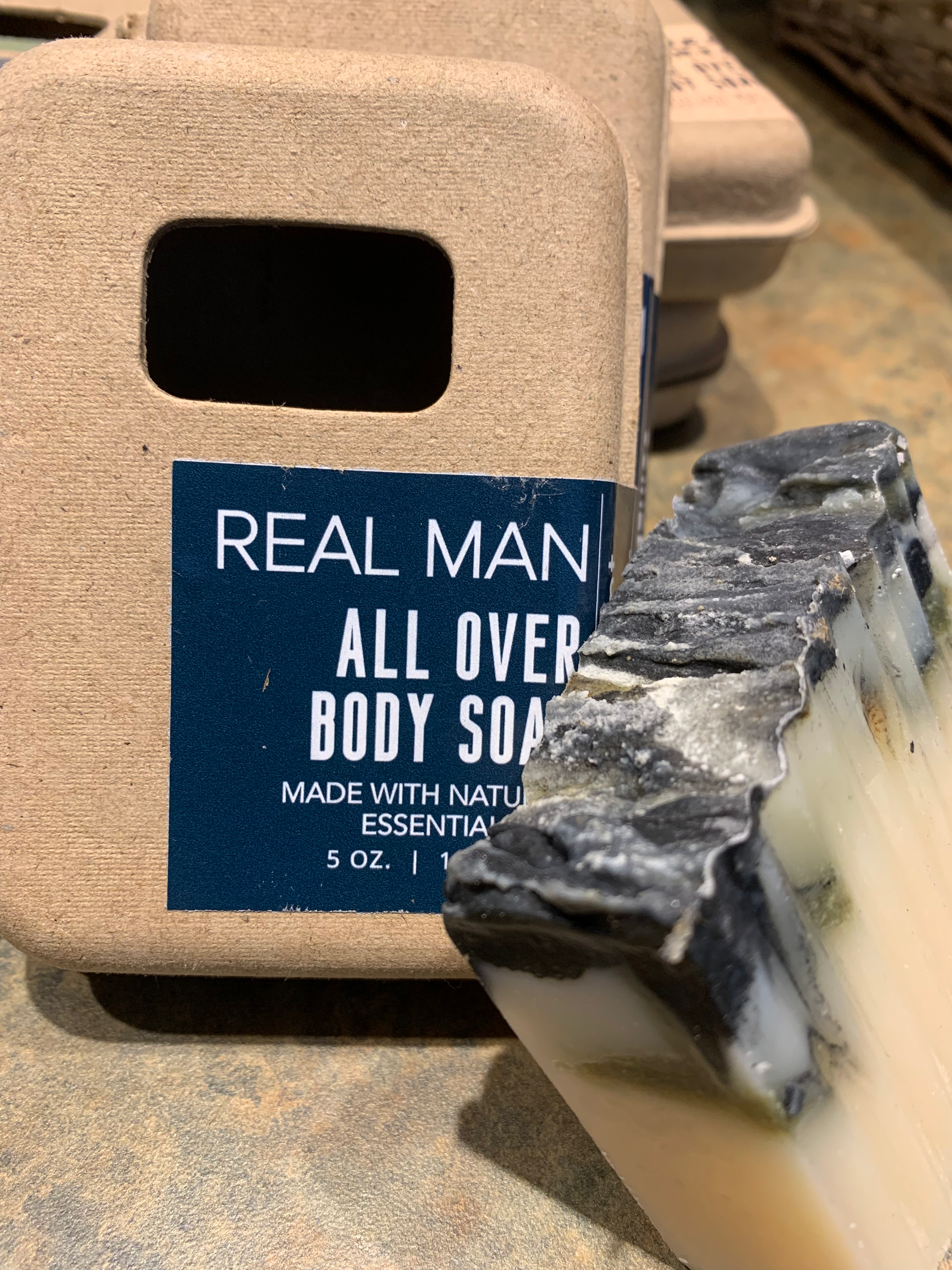 Crafted for the modern man, Real Man Soap features a robust blend of cedarwood, spike lavender, basil, vetiver, thyme, orange peel, petitgrain, lime, and mandarin essential oils. This earthy soap cleanses deeply while leaving behind a fresh, masculine scent. Naturally colored with mica, it’s a perfect addition to your daily grooming routine.